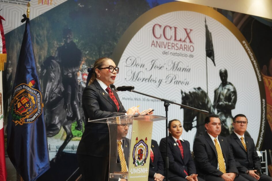 “Honrar a Morelos es asumir valores, es ser igualitarios en un mundo que aún discrimina, es ser justos en una sociedad que a veces premia al que hace trampa, apostar por la educación en tiempos donde muchos buscan los atajos, es servir con humildad en un entorno que muchas veces promueve el egoísmo y la arrogancia”, enfatizó la rectora.