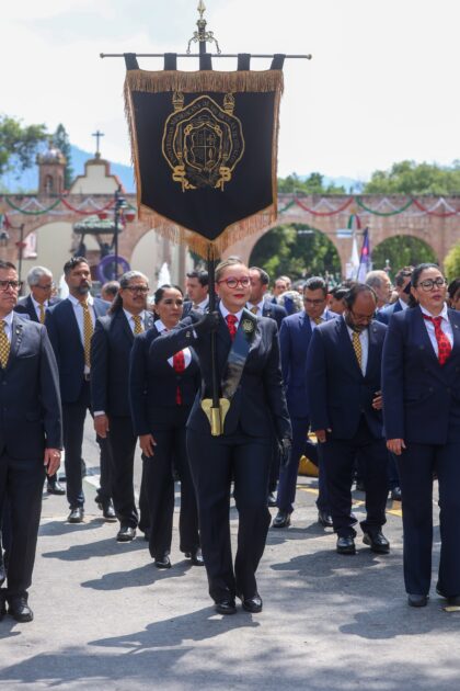 Con paso firme y entre aplausos del público, el contingente de la UMSNH integrado por cerca de 800 elementos entre funcionarias, funcionarios, directoras y directores de escuelas, facultades e institutos, consejeros universitarios, docentes, estudiantes e integrantes de la galardonada Banda de Guerra recorrieron la Avenida Madero haciendo vibrar el corazón del Centro Histórico de Morelia con la historia, juventud y orgullo académico que representa la Máxima Casa de Estudios.