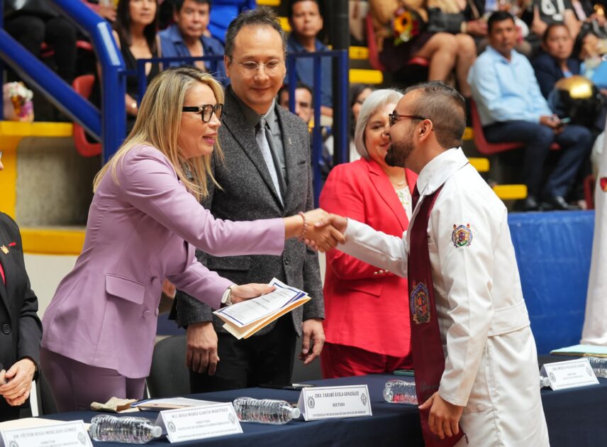 Acompañada por directoras y directores de las facultades del área de la Salud, la rectora manifestó su satisfacción por acompañar a las y los jóvenes nicolaitas en este logro, de igual forma, reconoció la presencia de las familias, quienes dijo, han sido un soporte para que los graduados concluyan dicha meta.