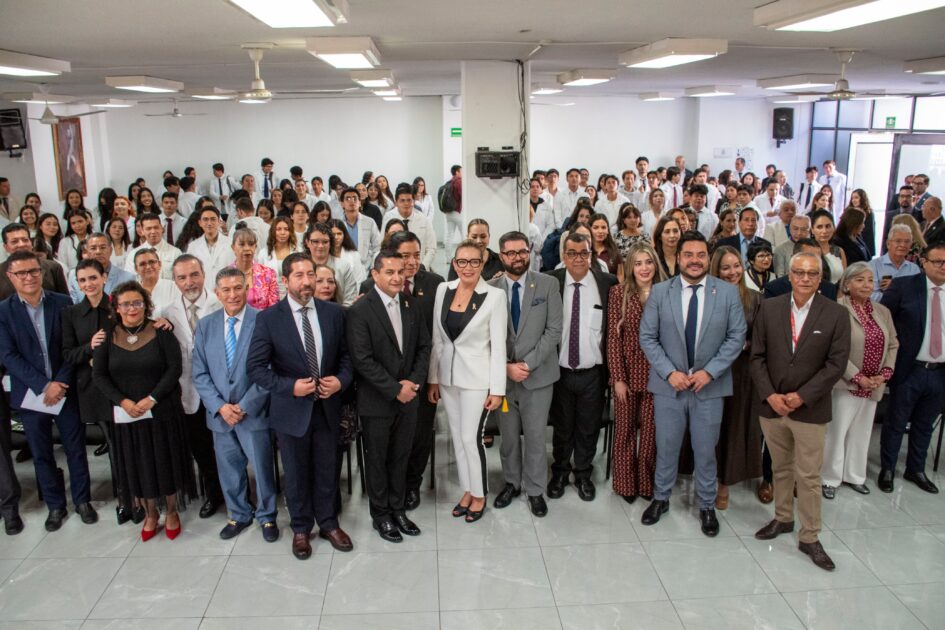 Por su parte, el orador oficial del evento, el doctor José Mena Olalde, afirmó que ser médico es un honor pero también es una enorme responsabilidad, es dedicar la mente al estudio de la ciencia y el corazón al servicio de la humanidad, y refirió que los tiempos recientes han demostrado que la formación del médico se fortalece precisamente en la adversidad.